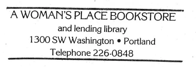 ·In City Open Press, August/September 1986 – page 41 in Directory “A Woman’s Place 284-1110 1431 NE Broadway – Women, Bookstore, Resource Center