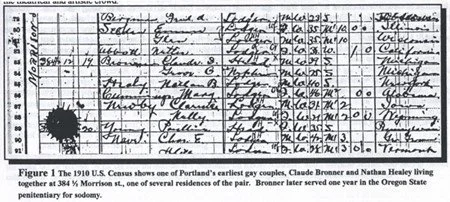 In J D Chandle’s book Hidden History of Portland, Oregon he states, “By 1910, a complex gay community existed in the area, with gay-owned businesses such as ABC restaurant owned by Claude Bronner.”