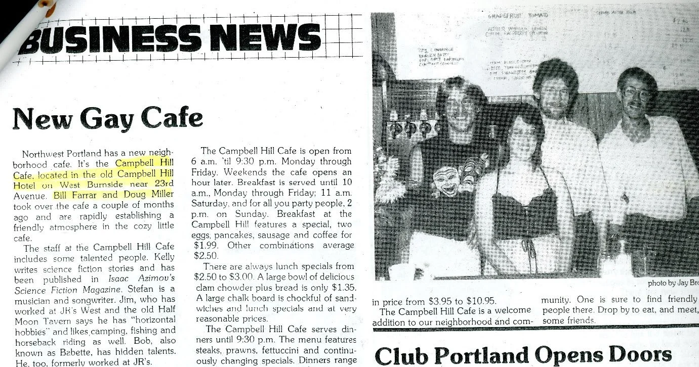 Per Portland Bards listing on Page 4B, NW Fountain, January 1983 – Breakfast, Lunch, dinner except close at 4:30 Sunday – no alcohol