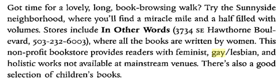 Right: As cited in Portland’s 2005 Columbia FunMap, Page 20, “Bookstores.”