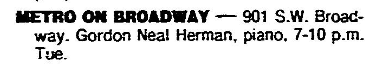 Listing ABOVE from The Oregonian newspaper, June 6, 1986