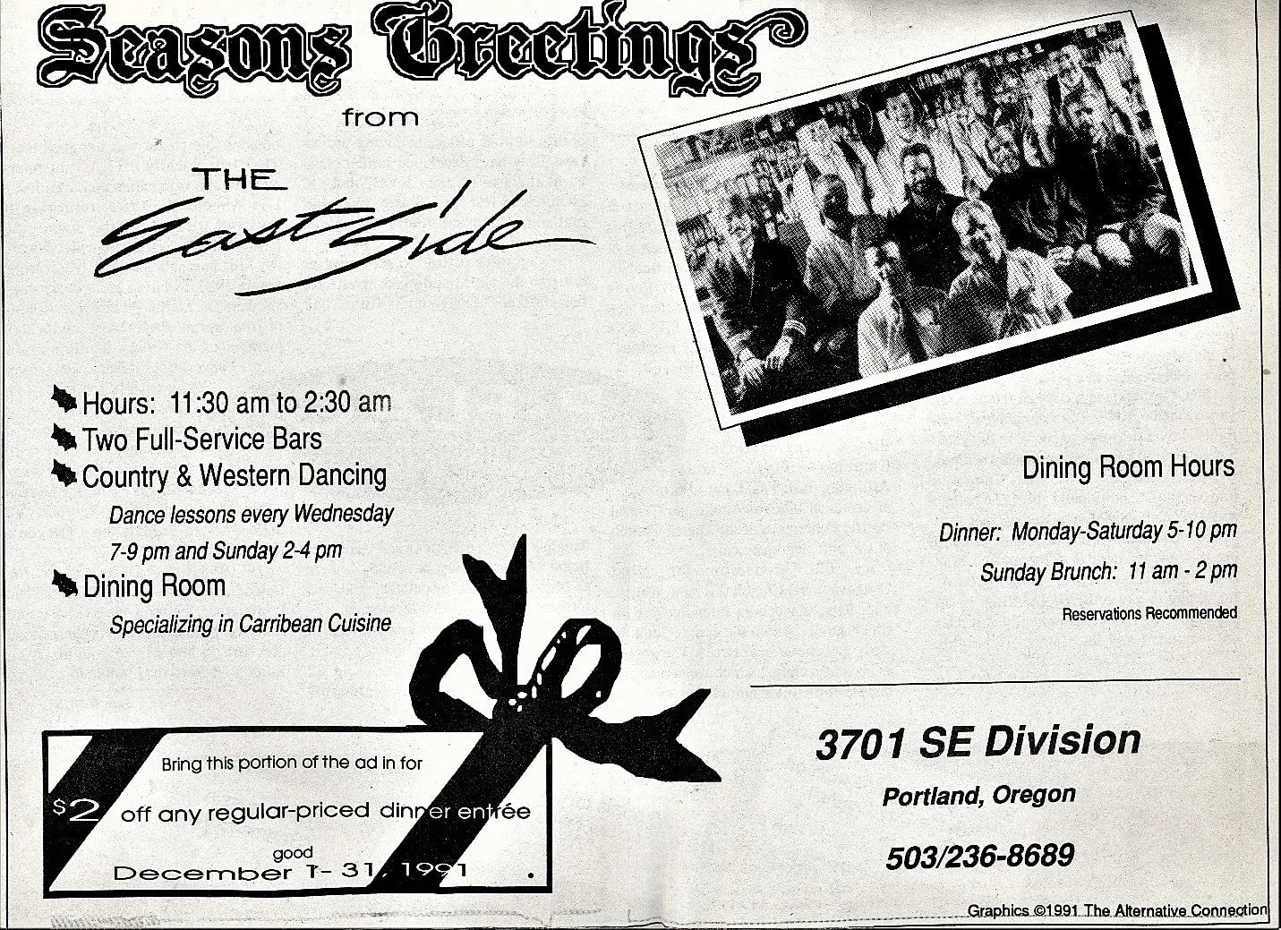 Ad in The Alternative Connection newspaper, page 2, approx. 1992 “THANK YOU PORTLAND FOR ONE FABULOUS YEAR!”