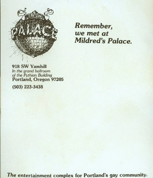 Listed in Damron Address Book/Address Guide 1979 under Bars/Clubs with notations YC- Young Crowd, D – Dancing, AH – After Hours, WE – weekends, * - Very Popular with the note: (No Booze) (Disco) and Mildred’s is spelled, Milord’s.