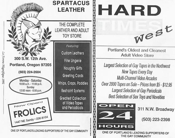· NOTE: FROLICS 1447 NE Sandy Blvd – appears to be part of Spartacus Leather – Bookstore located at 300 SW 12th Ave