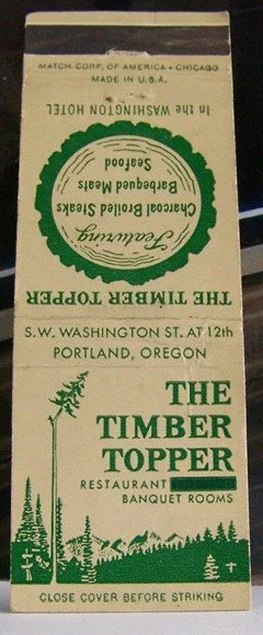 Below Left - matchbox cover. Per Below Right an ad in The Oregon Journal, August 2, 1957, page 8.