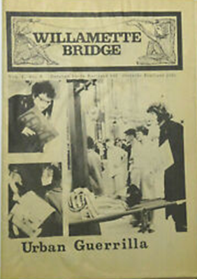 Willamette Bridge was an underground newspaper published in Portland, Oregon from June 7, 1968 to June 24, 1971. In the spring of 1968, several groups of people in Portland were discussing starting an "underground" newspaper in Portland, similar to the Los Angeles Free Press or the Berkeley Barb. They were partially motivated by a frustration with the reporting in the mainstream press, which was still supporting the Vietnam war, opposing progressive movements like the United Farmworkers Union, and showed no understanding at all of the growing "Counterculture" and its music, dress and mores. On the other hand, they saw many things going on in the city that were positive, but isolated- Antiwar activity at Reed College, "Hippies" gathering around Lair Hill park, the progressive wing of the Democratic Party gathering strength, craft stores and head shops opening around town, local bands like The Great Pumpkin and The Portland Zoo giving concerts. A newspaper could bring these groups together and break the information monopoly of the daily papers.